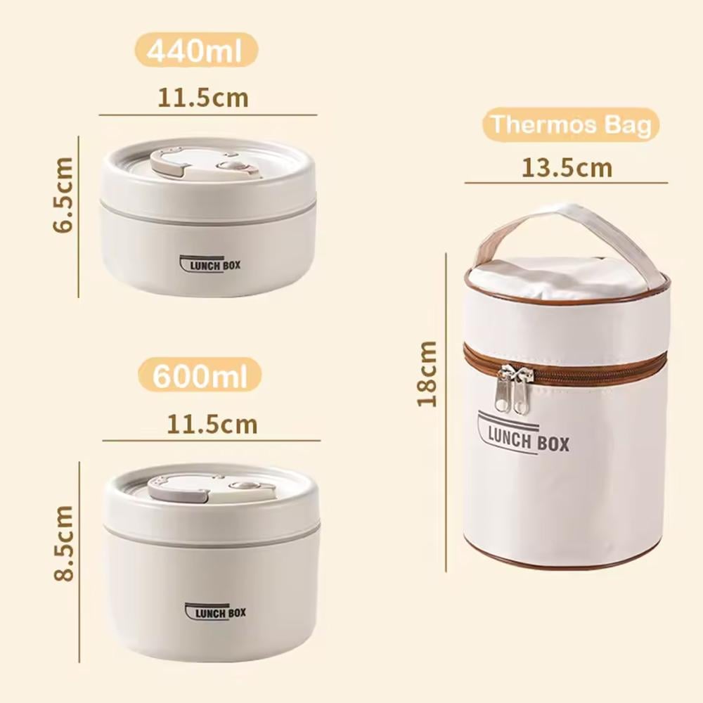 لانش بوكس حرارى 3 قطع مع شنطة هدية باللون البيج يقدم لك حلاً مثالياً لحفظ وتناول وجباتك ساخنة وطازجة في أي وقت. المجموعة العملية تجمع بين سهولة الاستخدام والتصميم الأنيق مع شنطة حمل مريحة ومناسبة للنقل.